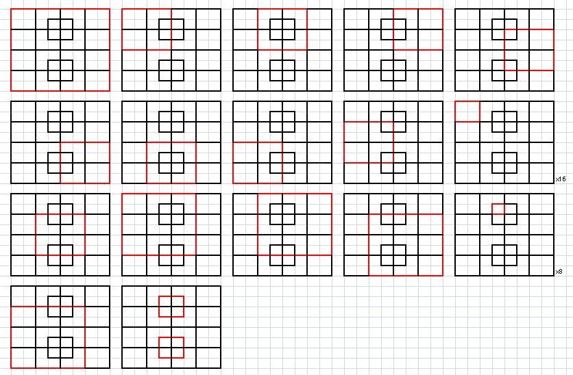 - 大:1x1が16、2x2が9、3x3が4、4x4が1