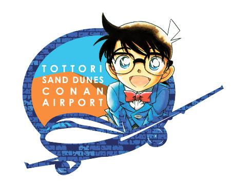 新ロゴは、鳥取砂丘を背景に、漫画の主人公「江戸川コナン」と飛行機が描かれている。