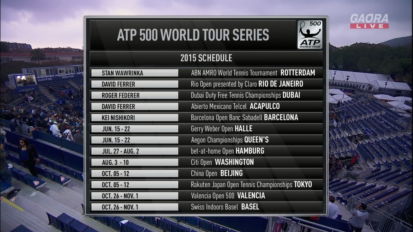 ATP500は、グランドスラム、マスターズが開かれてない週に0~1大会