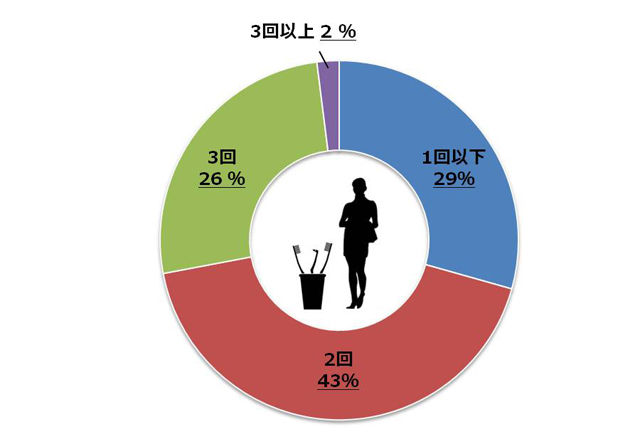 「1日にどのくらいの頻度でオーラルケアを行いますか」(単独回答)n=600/日本人