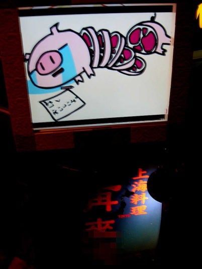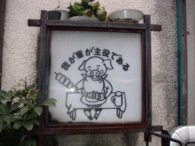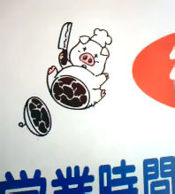 肉屋で豚のコックさんが包丁構えてるのとかな
