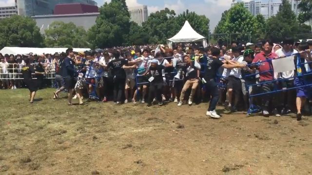 整理券入場のはずが、柵が破壊され、係員の制止を振り切ってダッシュ。巻き込まれて転倒する人も多数。
