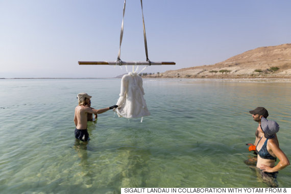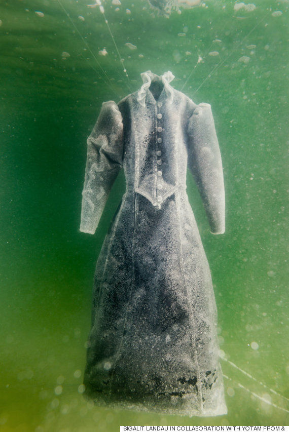 2014年の2カ月間、死海はドレスの住み家でもあった。イスラエルのアーティスト、シガリット・ランダウはドレスに重りを付け、水中に沈めた。