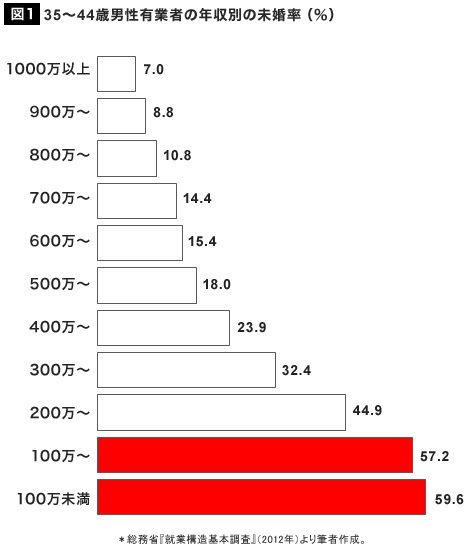 年収が高いほど未婚率も低い