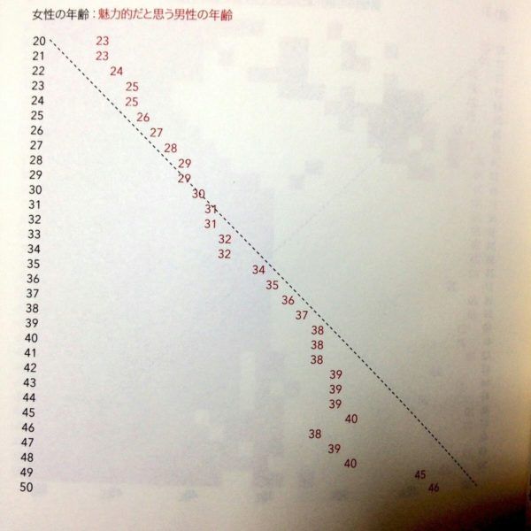 このグラフは、40代後半の男性も20歳そこそこの女の子を選んでるけど、40代後半の男性全員がその女の子に釣り合うスペックを持っている訳ではない