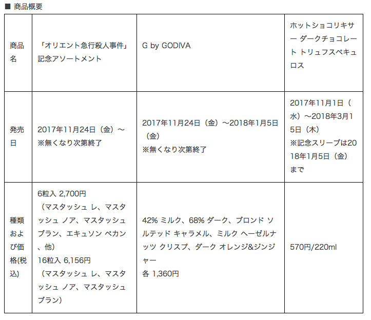 引用元:【食】ゴディバが映画『オリエント急行殺人事件』とコラボしたチョコレートコレクションを発売