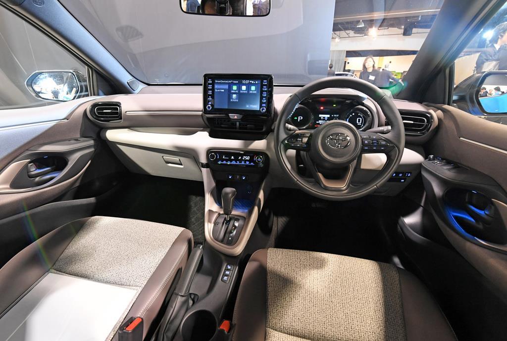 世界初公開されたトヨタの新型コンパクトカー「ヤリス」=15日午後、東京・青海のMEGAWEB ライドスタジオ