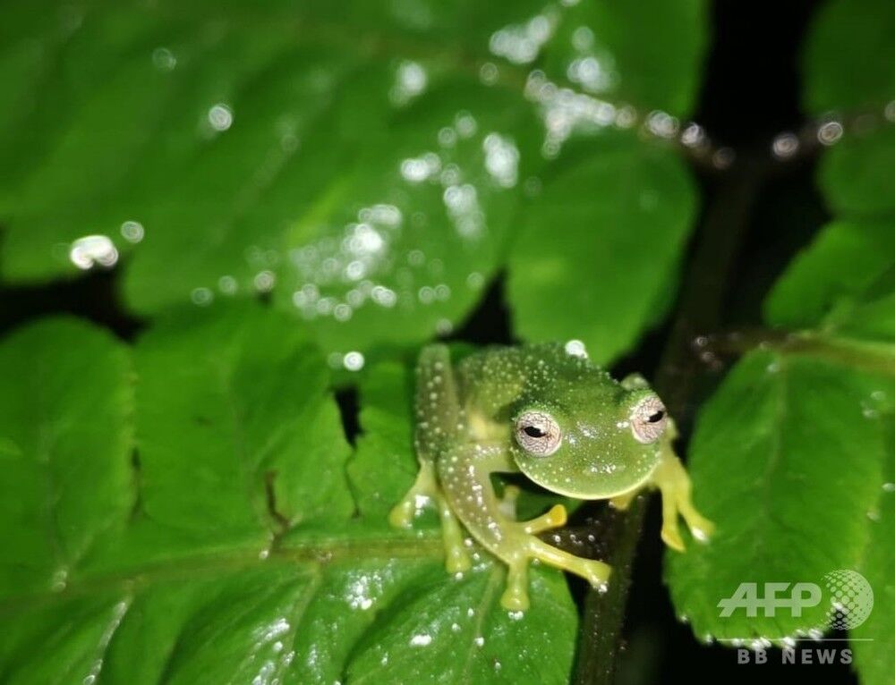 このアマガエルモドキ科のカエルは、腹部が透明なことから「ガラスガエル」の愛称で親しまれている。