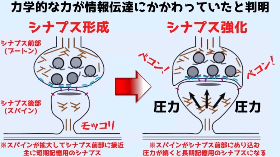 引用元: ・脳は電気でも神経伝達物質でもないシナプスでは筋肉に匹敵する「力で情報伝達」と判明 東京大学